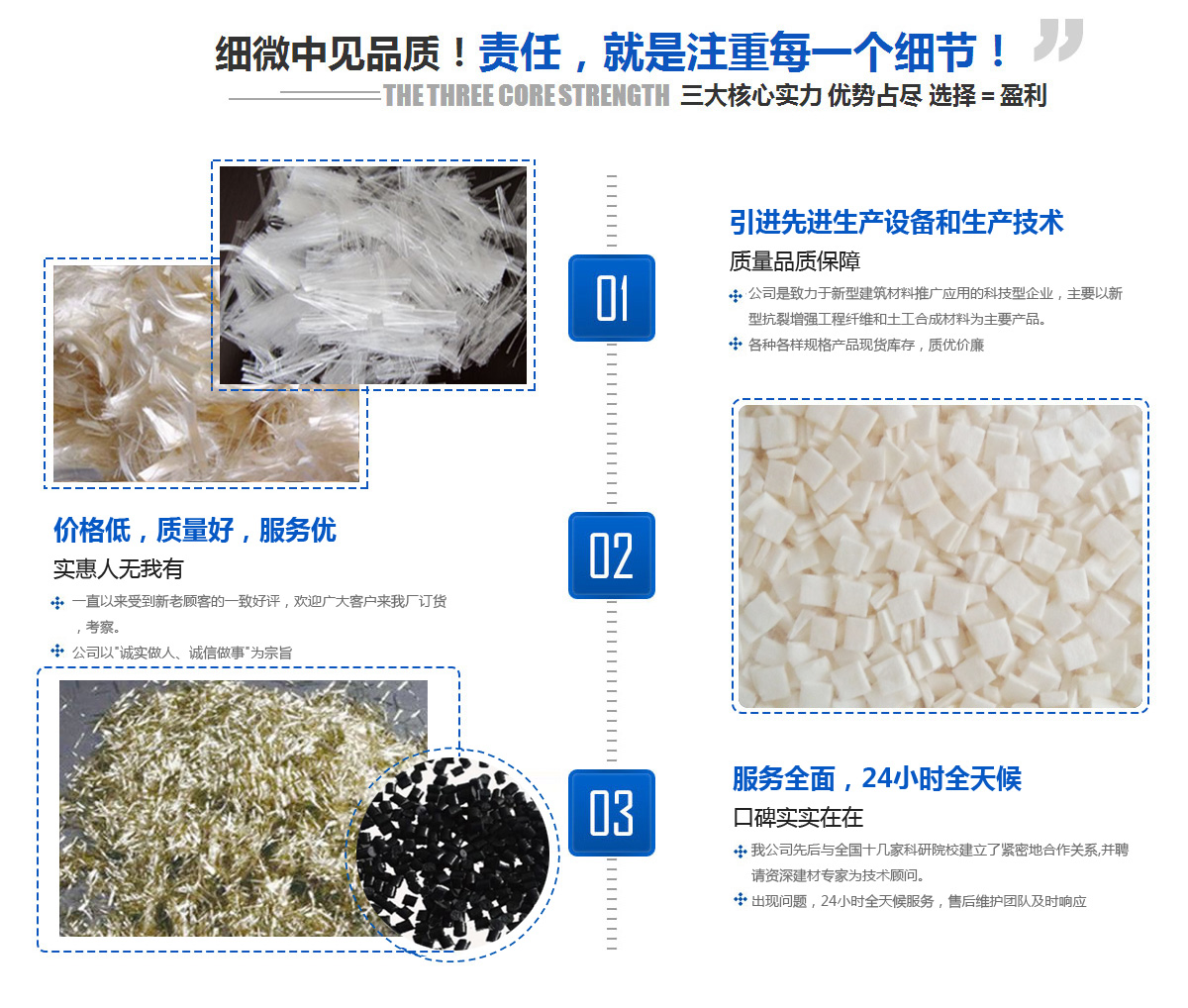 以新型抗裂增強工程纖維和土工合成材料為主要產品